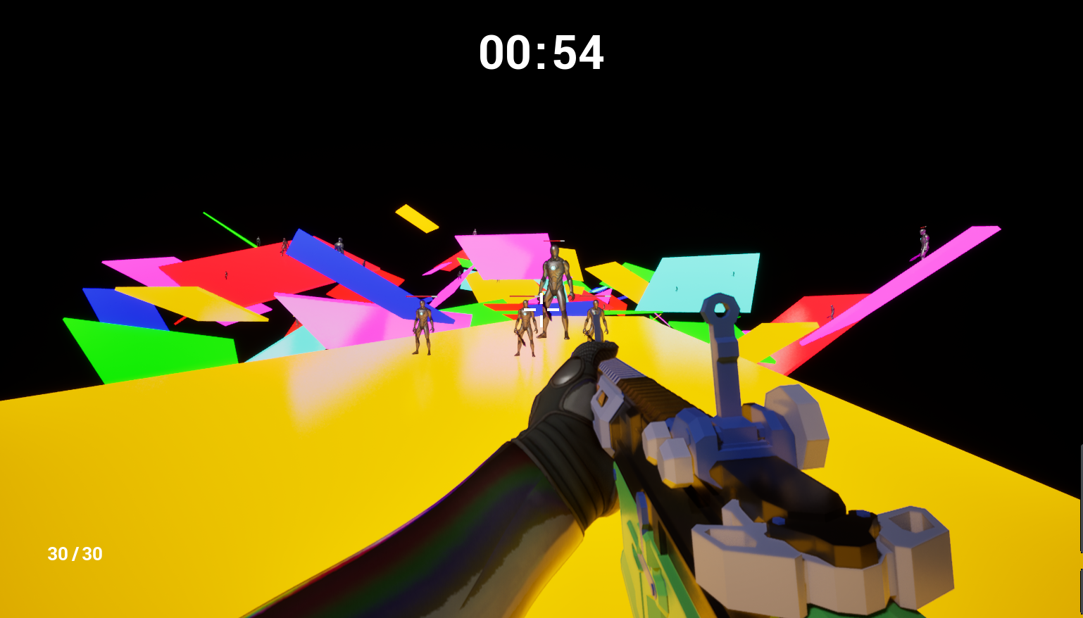 Neon Dash is a fast-paced first-person action shooter platformer made in 72 hours for the Patch Notes v1.0 Game Jam with the theme “The Error is the Feature.” You have 1 minute and 30 seconds to reach the finish line by jumping across neon platforms, fighting through waves of enemies, and taking down bosses before time runs out. Will you make it in time?